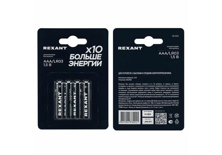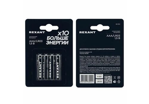 Элемент питания (батарейка) AAA/LR03 1,5В блистер 4 шт. REXANT /391012