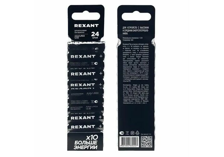 Элемент питания (батарейка) AAA/LR03 1,5В блистер 24 шт. REXANT /391013