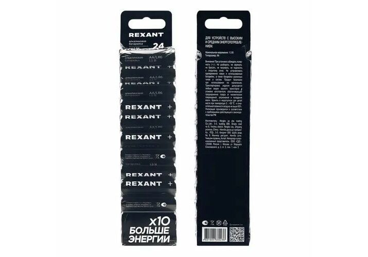 Элемент питания (батарейка) AA/LR6 1,5В блистер 24 шт. REXANT /391024