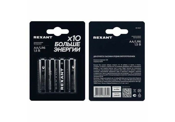 Элемент питания (батарейка) AA/LR6 1,5В блистер 4 шт. REXANT /391027