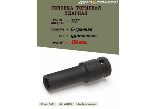 Головка ударная 09 мм 1/2 6-ти гр. удлиненная" ДТ /660209