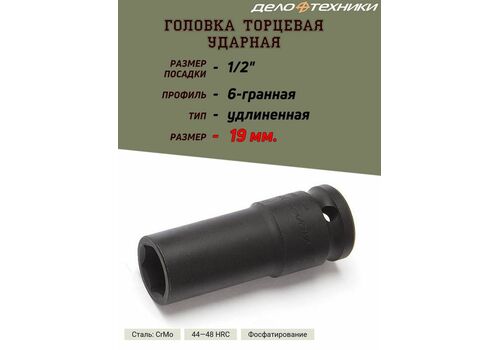 Головка ударная 19 мм 1/2 6-ти гр. удлиненная" ДТ /660219