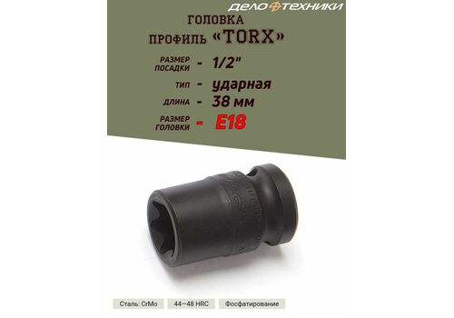 Головка ударная изготовлена из хромомолибденовой стали CrMo методом горячей штамповки с последующей термообработкой. Головка закалена, защищена от коррозии фосфатированием.