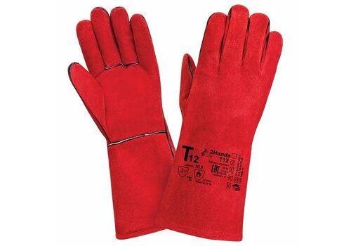 Цельноспилковые сварочные краги с подкладом. Сшиты из высококачественного спилка КРС красного цвета
