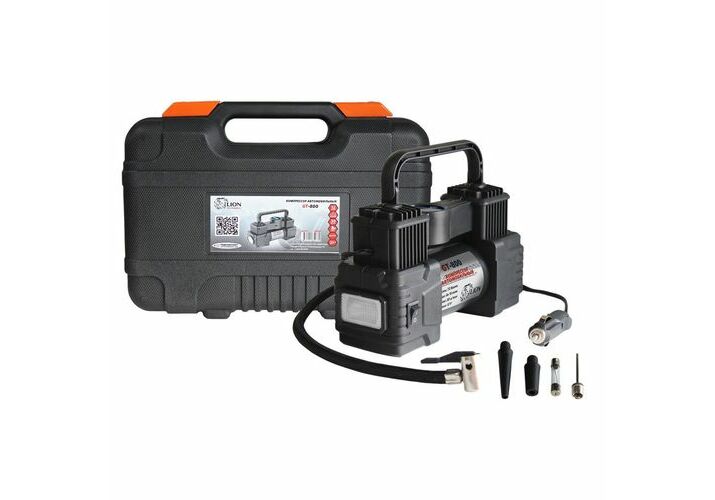 Компрессор "LION GT-800" 30 л/мин, 12В, цифровой манометр, автостоп, LED-фонарь,набор инструментов ,в кейсе /GT800