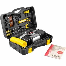 Автомобильный компрессор АС 575ма МаякАвто в кейсе с набором инструментов является самым многофункциональным компрессором в линейке автомобильного компрессора МаякАвто, за счет удобных габаритных размеров кейса и самого компрессора, мощного электродвигателя, подключения через гнездо прикуривателя автомобиля, а так же сопутствующих инструментов и приспособлений для ремонта шин, в случае их прокола.