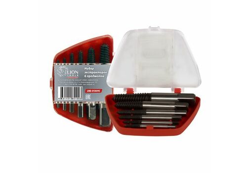 Набор экстракторов 6предметов (Ø 3-6;6-8;8-11;11-14;14-18;18-25мм) мелкий шаг, в футляре LION TOOLS /LNE01309C