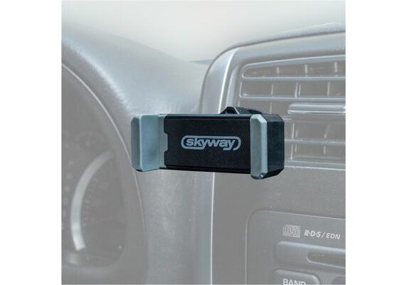 Держатель телефона на дефлектор зажимной SKYWAY - компактный и очень легкий держатель для мобильных устройств. Устанавливается на решетку дефлектора, не требуя особых усилий. Регулируемое основание держателя позволяет разместить телефон максимальной шириной до 8,7 см. Конструкция основания поворотная, за счет чего можно выбрать удобное для себя положение. С таким помощником можно пользоваться навигацией, смотреть фильмы в пробках, развлечь Ваших пассажиров или ответить на звонок, не отвлекаясь при этом от дороги.