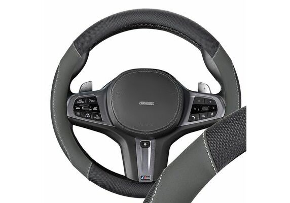 Оплетка экокожа M (37-39 см) SKYWAY Design Combo-15 Черная/серая - стильный аксессуар сохранит руль вашего автомобиля от повреждений, скроет царапины и потёртости. Создаст атмосферу уюта в автомобиле, добавит комфорта во время вождения и подчеркнет индивидуальность владельца. Оплетка выполнена из качественной экокожи. Декоративные вставки придают оригинальности, а также улучшают контакт рук с рулем, позволяя легко определить его положение. Внутренний слой оплётки надежно фиксирует её на руле, исключая проскальзывание. В производстве TM SKYWAY используются только качественные, экологически чистые материалы. Аккуратно выполненные и прочные швы - гарантия высокой долговечности. Экокожа проста в уходе, изностойкая, не нагревается на солнце, в холодную погоду приятная на ощупь.