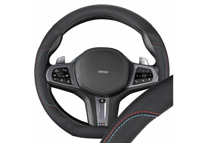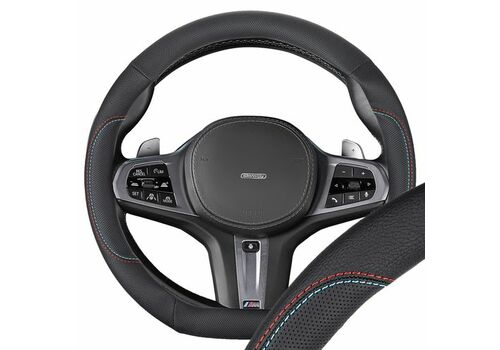 Оплетка D-тип экокожа M (37-39 см) SKYWAY Mix Bavaria-3 Черная, красная/синяя строчка - современная классическая оплётка с плоской нижней гранью, скроет имеющиеся потёртости и царапины, предотвратит появление новых. Обеспечивает надёжный контакт ладоней с ободом руля. Оплётка выполнена из высококачественной экокожи и ПВХ которая сохраняет привлекательный внешний вид в течение длительного времени, проста в уходе, износостойкая. За счет многослойной структуры не нагревается при воздействии солнечных лучей, в зимнее время нехолодная на ощупь. Применение инновационных материалов на внутренней стороне оплетки исключает её проскальзывание. Аккуратно выполненные швы - гарантия высокой долговечности.