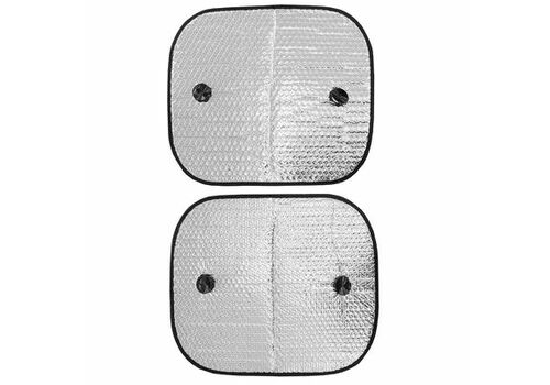 Шторка экран 44*38см на присосках фольга на боковые стекла SKYWAY 2 шт - двусторонняя солнцезащитная шторка устанавливается на боковые стекла в салоне автомобиля с целью блокировки попадания солнечных лучей в ясную, солнечную погоду. Серебристая поверхность шторки отражает солнечные лучи, защищая салон от нагрева. Устанавливается легко на боковое стекло с помощью двух присосок. В случае, когда нужно убрать шторку, она легко снимается, компактно складывается, не займет много места в салоне автомобиля.
