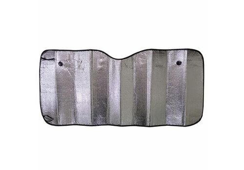 Шторка экран 130*60см на лобовое стекло SKYWAY фольга двусторонняя солнцезащитная шторка устанавливается на лобовое стекло в салоне автомобиля с целью блокировки попадания солнечных лучей в ясную, солнечную погоду. Серебристая поверхность шторки отражает солнечные лучи, защищая салон и торпеду автомобиля от нагрева. Устанавливается легко к лобовому стеклу с помощью двух присосок. Размер шторки идеален для кроссоверов и коммерческого транспорта.
