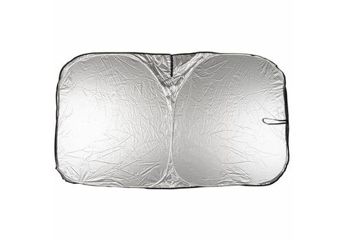 Шторка экран 140*80см на лобовое стекло SKYWAY- двусторонняя солнцезащитная шторка устанавливается на лобовое стекло в салоне автомобиля с целью блокировки попадания солнечных лучей в ясную, солнечную погоду. Серебристая поверхность шторки отражает солнечные лучи, защищая салон и торпеду автомобиля от нагрева. Устанавливается к лобовому стеклу при помощью липучки, для надежного прилегания зажимается козырьком. Есть дополнительное отверстие под зеркало заднего вида. В случае, когда нужно убрать шторку, она легко снимается, компактно складывается в чехол, который идет в комплекте.