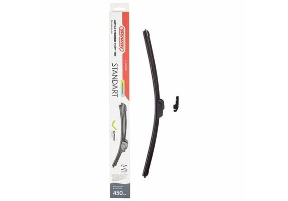 Щетка стеклоочистителя бескаркасная SKYWAY СТАНДАРТ в коробке 45см/18" - бескаркасные щётки стеклоочистителя SKYWAY обеспечивают равномерное очищение всей поверхности стекла. Благодаря технологическому усовершенствованию щетки SKYWAY способны удалять даже самые мелкие частицы воды. Натуральный каучук, из которого произведены щетки, и графитовое напыление позволяют значительно снизить уровень шума, а также увеличивают срок службы. И это еще не все: щетка скользит по поверхности с минимальным усилием, а резина остается эластичной в жару, мороз и даже под действием химических реагентов. Щетка плотно прилегает к стеклу даже на большой скорости, надежно защищая его от загрязнений.