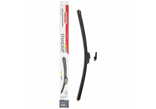 Щетка стеклоочистителя бескаркасная SKYWAY СТАНДАРТ в коробке 55см/22" - бескаркасные щетки используются для любого автомобиля. Строение спойлера щетки и высокая прижимная сила позволяют устанавливать их на автомобили с правым и левым расположением руля, а также с распашной системой стеклоочистителя. В комплекте универсальный адаптер для крепления. Стильная упаковка привлекает внимание. В отличие от классических щеток, SKYWAY стандарт не замерзает зимой, плотно прилегает к стеклу и не оставляет полос. Низкий профиль щетки улучшает обзор. Щетка обеспечивает очистку стекла в температурном диапазоне от -30 до +60 градусов. Резинка щеток с графитовым напылением работает мягко и не портит стекло.