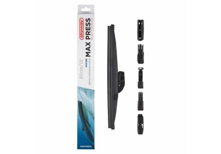 Щетка стеклоочистителя каркасная зимняя SKYWAY MAX PRESS 6 адаптеров в коробке 30см/12" /S02703014