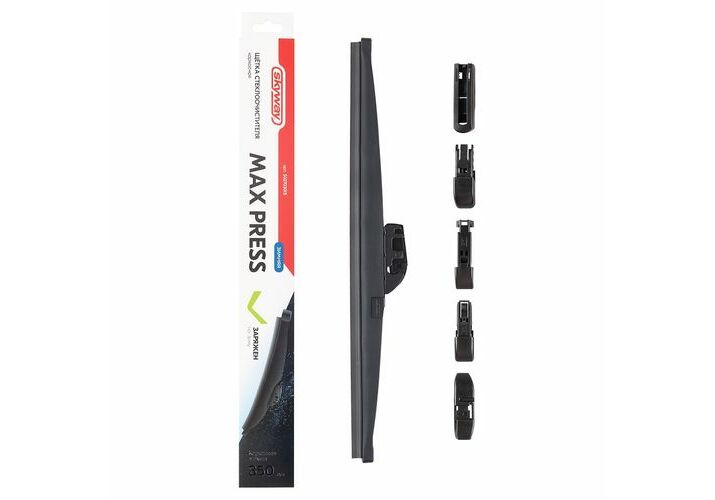 Щетка стеклоочистителя каркасная зимняя SKYWAY MAX PRESS 6 адаптеров в коробке 35см/14" /S02703015