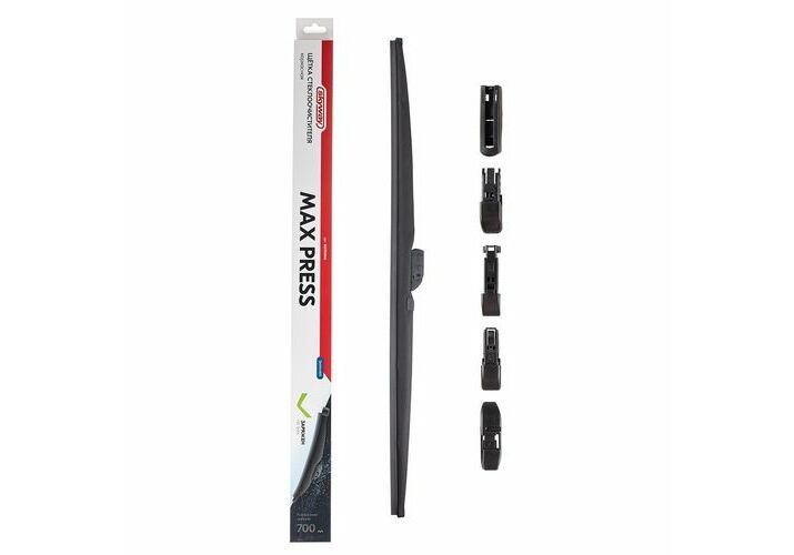 Щетка стеклоочистителя каркасная зимняя SKYWAY MAX PRESS 6 адаптеров в коробке 70см/28" /S02703026