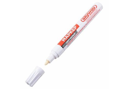 Маркер SKYWAY универсальный с наконечником из фетра, цвет белый - маркер на масляной основе, водостойкий, со средней толщиной наконечника. Подходит для нанесения на различные поверхности: вы можете сделать надпись на металлической трубе, дереве, стекле или компакт-диске. Универсальный маркер удобно держать в руке. Корпус изготовлен из металла, который не гнется и сохраняет форму.